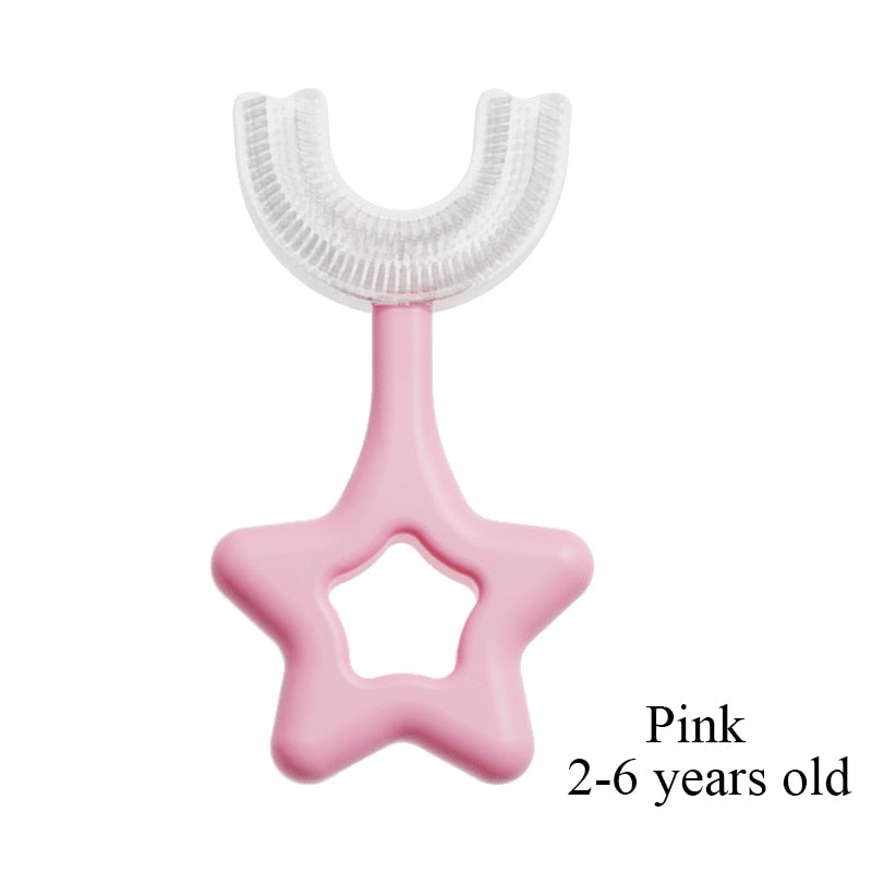 360 Zahnreinigung: Die U-förmige Zahnbürste entspricht dem ergonomischen Design, passt sich perfekt der Form der Kinderzähne an und passt sich der Mundhöhle an. Es kann die Zähne beim Putzen bedecken und die Zähne 360 ° in alle Richtungen reinigen.